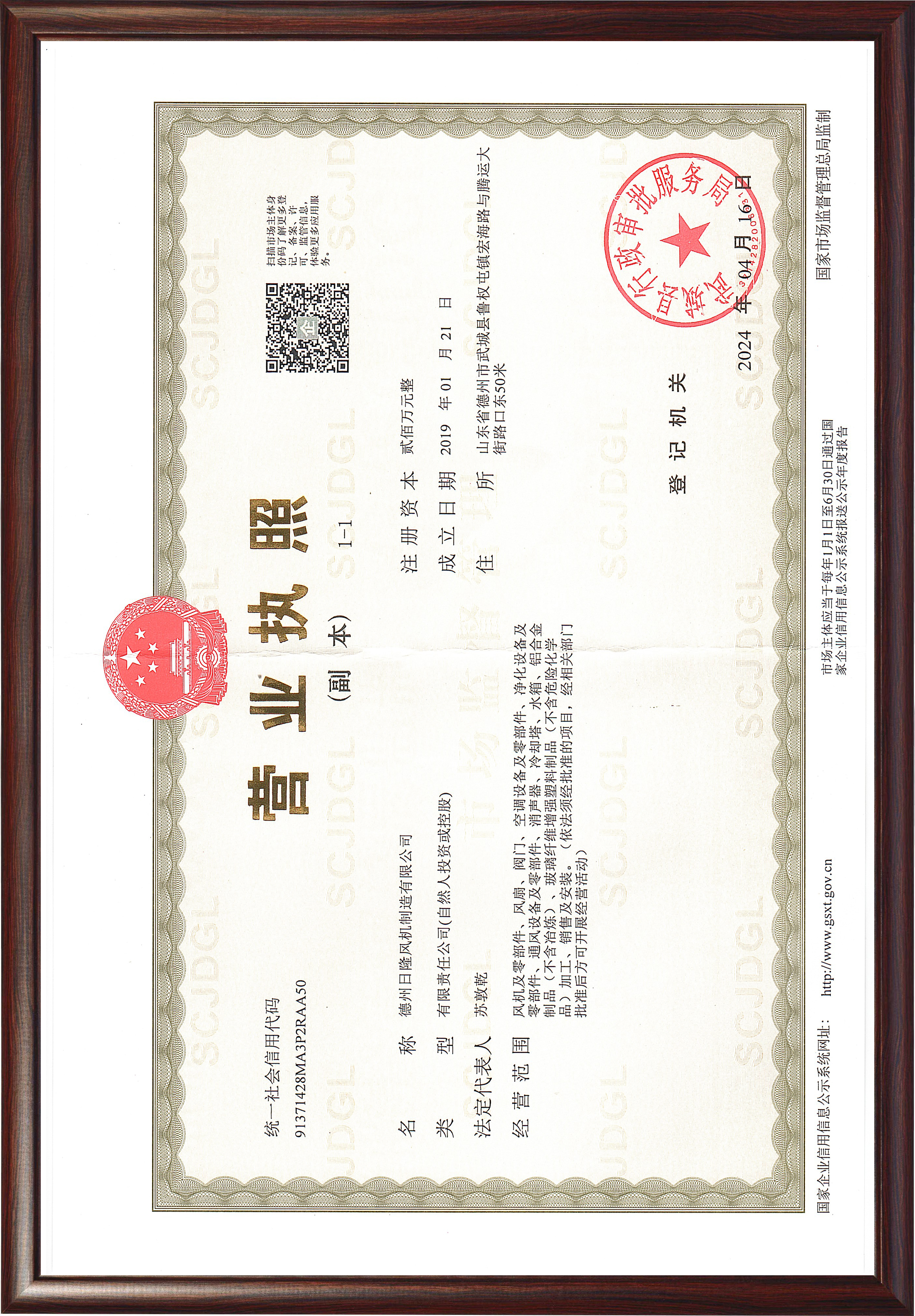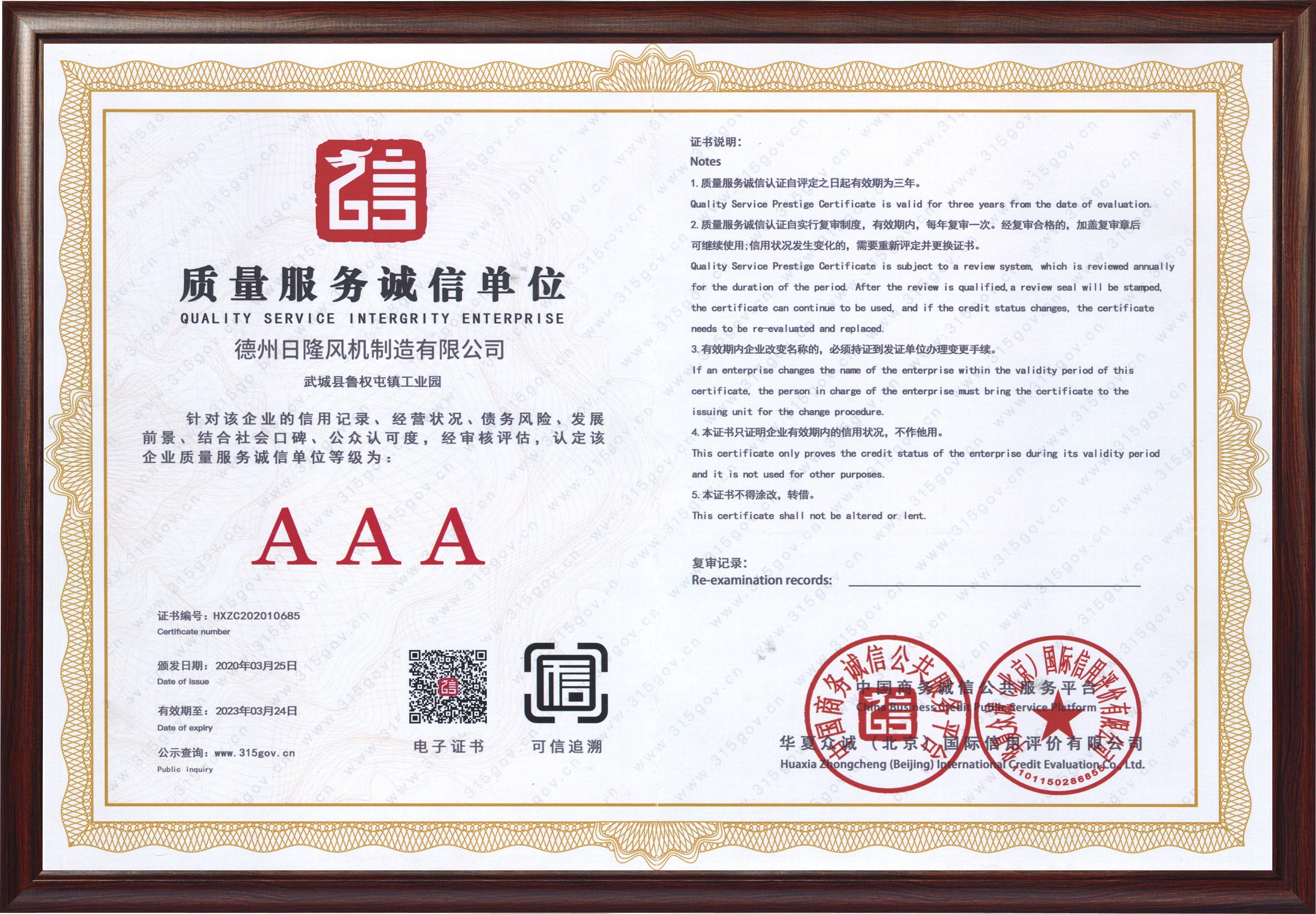 日隆風機資質(zhì)